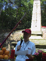 年屆七十的他怎會(huì)忘記六十年前的戰(zhàn)火硝煙,怎會(huì)忘記日本帝國(guó)主義的殘酷暴行,情不能已處,他的聲音幾度哽咽。但是,今天他以團(tuán)長(zhǎng)之職帶著參加“湖湘文化之旅”的兩岸學(xué)子前來(lái)祭奠躺在這里的民族英雄,他希望青年一代永遠(yuǎn)銘記歷史。