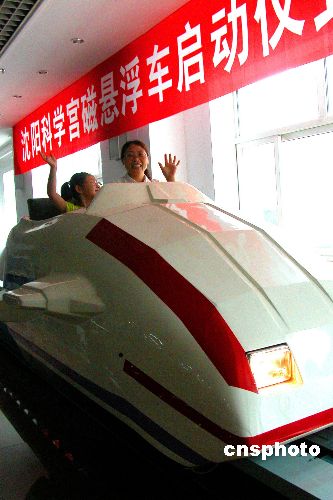 7月9日,一位女士帶著孩子在沈陽科學(xué)宮乘坐磁懸浮車。該磁懸浮車軌道60米,是全國(guó)室內(nèi)最長(zhǎng)的軌道,往返1分60秒。自6月24日運(yùn)行以來,每天接待100多名顧客。作者:劉寶成