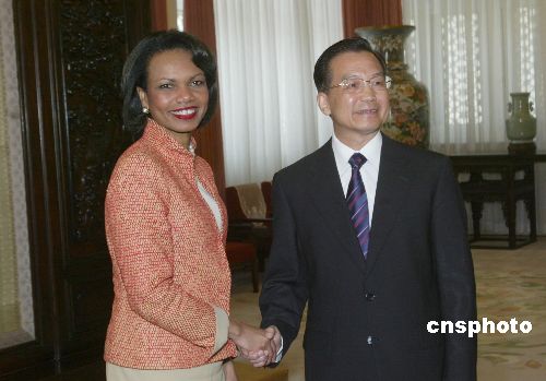 中新網(wǎng)北京七月十日電(記者李靜)中國國務(wù)院總理溫家寶十日在北京會(huì)見美國國務(wù)卿賴斯時(shí)強(qiáng)調(diào),中國堅(jiān)持走和平發(fā)展道路;中國現(xiàn)在沒有,將來也不會(huì)干涉和威脅任何國家。