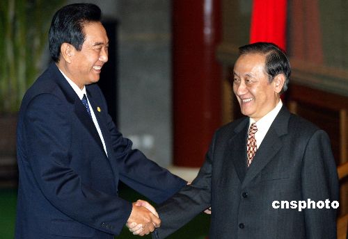 圖:陳云林與新黨主席郁慕明在北京舉行會(huì)談