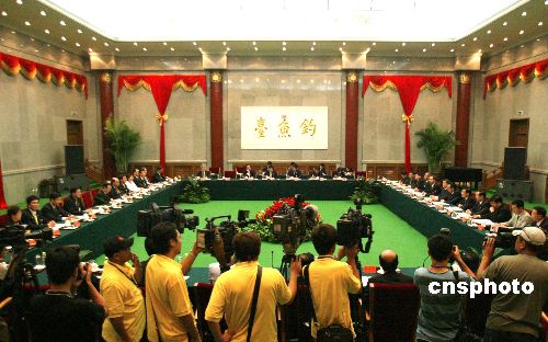 七月十日,中共中央臺(tái)灣事務(wù)辦公室主任陳云林與新黨主席郁慕明在北京舉行會(huì)談。作者:廖文靜