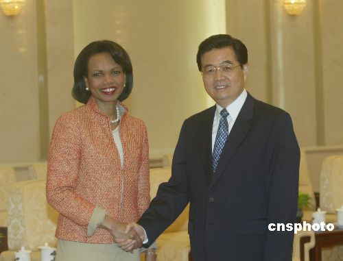 胡錦濤會見賴斯 強調(diào)訪問有助增進(jìn)理解促進(jìn)合作