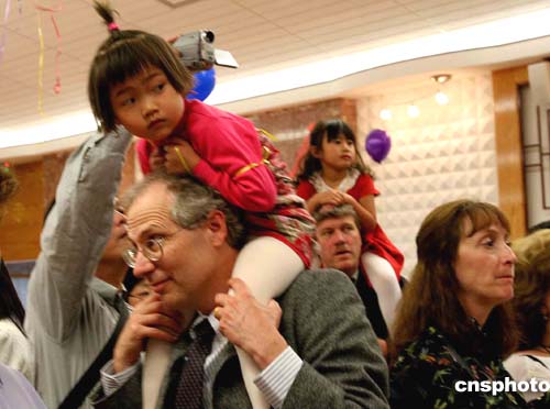 據(jù)美國星島日報報道,10日,一百多個領(lǐng)養(yǎng)中國兒童的美國家庭,獲邀出席了駐舊金山市中領(lǐng)館特別為他們準備的聯(lián)歡會。中領(lǐng)館總領(lǐng)事彭克玉會上向這些家庭表示了感謝,并指出,今年已經(jīng)是中領(lǐng)館第六年舉辦這樣的活動,而自從13年以前中國通過領(lǐng)養(yǎng)法并與國際法規(guī)接軌以后,在過去的十年間,已經(jīng)超過5萬個中國兒童被領(lǐng)養(yǎng),當中80%的領(lǐng)養(yǎng)家庭來自美國。