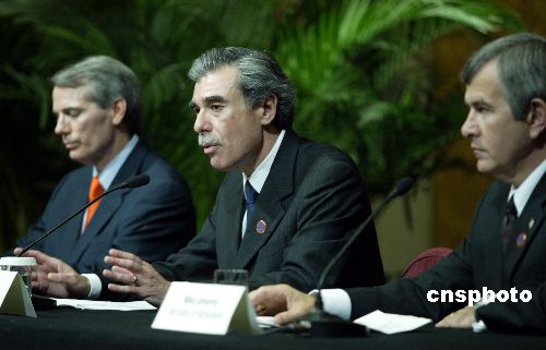 七月十一日晚,美國(guó)商務(wù)部長(zhǎng)古鐵雷斯、美國(guó)貿(mào)易代表波特曼、美國(guó)農(nóng)業(yè)部長(zhǎng)約翰斯在北京召開(kāi)記者會(huì),就第十六屆中美商貿(mào)聯(lián)委全會(huì)情況回答記者提問(wèn)。作者:廖文靜