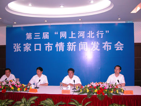 中新網(wǎng)7月11日電 人民網(wǎng)、新華網(wǎng)、中新網(wǎng)、新浪、搜狐等中國(guó)30家網(wǎng)絡(luò)媒體今天下午抵達(dá)河北省西北部城市張家口,參加了由張家口政府舉辦的“張家口市情”新聞發(fā)布會(huì)。