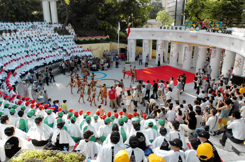 11日,香港舉行奧林匹克廣場揭幕禮。位于香港公園的廣場命名為奧林匹克廣場,是香港推廣奧運(yùn)精神的地標(biāo),將來會(huì)有很多重要體育活動(dòng)在此舉行。國際奧委會(huì)主席羅格在港協(xié)暨奧委會(huì)會(huì)長霍震霆的陪同下,為廣場啟用揭幕。(新華社圖)