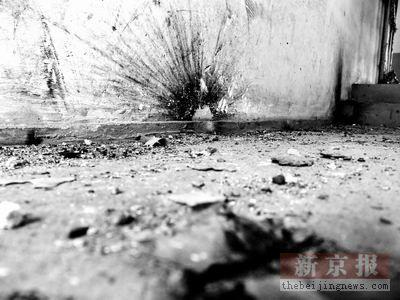 昨天下午,事發(fā)現(xiàn)場被炸的情景還保留著。爆炸的地點(diǎn)位于第303干部學(xué)校宿舍樓一樓的樓道門口,在樓道里遍地都散落著土屑和被震落的墻皮。在樓道東墻和西北墻角上共有3處爆炸物爆炸時留下的黑色痕跡。樓道的南墻被炸開一條長三四十厘米、寬約一厘米的裂縫。