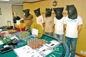 “克隆”賭場(chǎng)案被捕的五名男子分別姓劉、姓馮、姓植、姓徐及姓梁,年齡介乎二十余至三十多歲,持通行證入境,全部來(lái)自廣州,警方相信目前仍有多名涉案人士在逃,正與內(nèi)地警方交換資料追查。