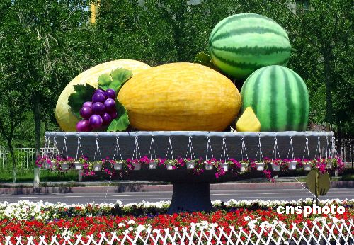 隨著新疆旅游旺季的到來,烏魯木齊在街道上增添了各種特色雕塑喜迎八方客。作者:馬蕙萍