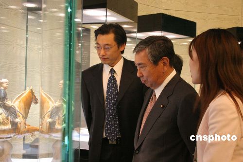 河野洋平依次參觀了館內(nèi)陳列的豚尊、唐三彩“騰空馬”等八件國寶級文物,對三千六百多年前中國就能制作出如此精美的青銅酒器大為驚嘆,并稱奔馬造型的唐三彩十分罕見。在紫檀齋,河野洋平被其中的仿明清宮廷家具深深吸引,對云朵和海浪交錯鏤空的九龍戲珠大如意大為贊賞。當(dāng)聽說雕工精細(xì)的大畫筒是二十個雕工藝人足足用了三年時間才雕刻而成時,他更是贊不絕口。