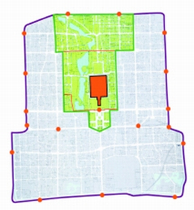 而草案一的緩沖區(qū)范圍實(shí)為原皇城范圍:南起長(zhǎng)安街,北至平安大街;東起南、北河沿,西至府右大街和西黃城根北大街。該區(qū)域目前控制較好,并已做出保護(hù)規(guī)劃,但范圍太小,難以達(dá)到聯(lián)合國(guó)教科文組織的保護(hù)要求。