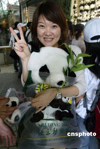 臺(tái)灣東海大學(xué)的李姓女生進(jìn)了熊貓館后,迫不及待地向熊貓房的玻璃罩跑去,手里拿著照相機(jī)拍個(gè)不停!耙郧爸皇窃陔娨暽峡吹叫茇,這里的熊貓顯得很懶,而且茸毛有點(diǎn)臟!彼M芾韱T能每天給熊貓洗澡。臨走時(shí),她還選購(gòu)了一只玩具熊貓,并告訴記者,要把玩具擺在床前,每天都能看到。
