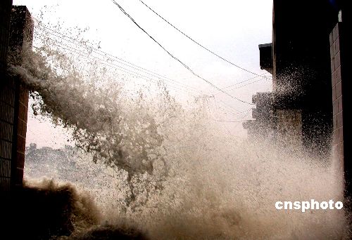 | 2005年第5號(hào)臺(tái)風(fēng)“海棠”嚴(yán)重影響浙江溫嶺沿海。自7月18日上午起,溫嶺一帶海面狂風(fēng)不斷,至19日海面的風(fēng)力已達(dá)到11級(jí)。暴風(fēng)驟雨,瓦飛樹倒,巨浪駭濤,給當(dāng)?shù)氐娜罕娚顜砗芏嗖槐。為抗擊“海棠”,溫嶺公安局啟動(dòng)《抗臺(tái)救災(zāi)預(yù)案》,部署抗臺(tái)各項(xiàng)準(zhǔn)備工作。抗臺(tái)用具、搶險(xiǎn)物資已全部到位,各警種嚴(yán)陣以待,準(zhǔn)備隨時(shí)抗擊“海棠”。作者:江國根