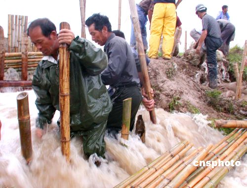 | 7月20日下午3時(shí)左右,因受5號臺風(fēng)“海棠”影響,浙江溫嶺濱海鎮(zhèn)團(tuán)結(jié)水系和金清水系交界的防洪堤,被沖開3米多長的決口,金清水系倒灌團(tuán)結(jié)水系,水位落差達(dá)1米多,水流洶涌。如不及時(shí)修復(fù)決口,濱海鎮(zhèn)五灣以東的5萬多畝農(nóng)作物將面臨被淹沒的危險(xiǎn)。發(fā)現(xiàn)險(xiǎn)情后,該鎮(zhèn)立即組織一支30多人小分隊(duì)進(jìn)行搶險(xiǎn)堵缺,經(jīng)過4個多小時(shí)鏖戰(zhàn),防洪堤決口終于被堵上。作者:鄭玲富
