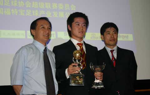 沈陽金德隊的陳濤獲得最佳新秀獎,他上個賽季的表現(xiàn)讓人眼前一亮,被認為是中國足球新一代球員中的佼佼者。在全部的24張選票中,他獲得了13票。最佳教練員獎由目前的國家隊主教練朱廣滬獲得,他去年帶領(lǐng)資金匱乏的深圳隊逆境中奪冠,讓人信服,在24張選票中他得到19張,高票當選。最佳裁判員則是孫葆潔,他是陸俊之后,當前中國水平最高的裁判。