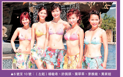 這次已是港姐穿著第五套泳衣示人,大會方面也承認比以往的多,節(jié)目監(jiān)制何小慧表示,港姐的口號是“美麗由心出發(fā)”,希望能夠表現(xiàn)她們的愛心,更突出美麗的一面。加上今年夏天特別炎熱,故此會越穿越少!