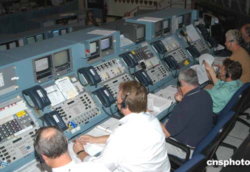 “發(fā)現(xiàn)號”在二十六日最后的倒計時發(fā)射進程中,肯尼迪航天中心的發(fā)射控制室嚴陣以待。(NASA圖片)作者:賈國榮
