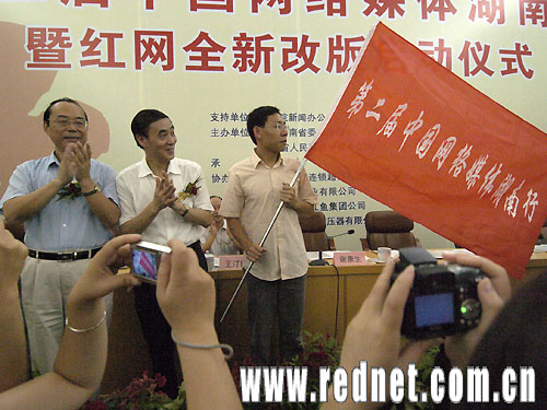 圖:湖南省委、省政府領導為采訪團授旗