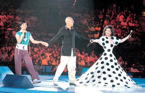 中新網(wǎng)7月27日電 據(jù)香港《大公報》報道,第二場“金光燦爛徐小鳳2005演唱會”上,汪明荃和羅家英拍拖捧場,在小鳳姐邀請下,更手拖手上臺客串,為演唱會帶起高潮,氣氛熱烈。