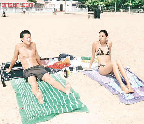 Edison最愛于中午時分、太陽最猛烈時暴曬,昨日他與一位擁有標(biāo)準(zhǔn)模特兒身形的女伴,于一時左右抵達(dá)淺水灣,女伴穿上繡花三點式泳裝,相比之下Edison則顯得較為保守,他只赤裸上身,穿上運動型短褲。接著二人各自拿出大毛巾墊于沙灘上,Edison再細(xì)心將兩條毛巾并排在一起,然后齊齊享受日光浴。