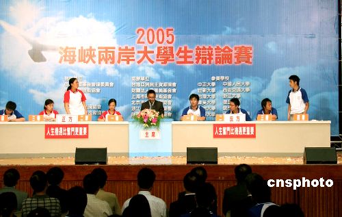 七月三十一日,海峽兩岸大學(xué)生辯論賽首次在臺(tái)北劍潭青年活動(dòng)中心鳴鑼。兩岸十二所知名高校計(jì)六十一名學(xué)子參賽。圖為開(kāi)幕當(dāng)日,兩岸辯手舉行表演示范賽。作者:董會(huì)峰