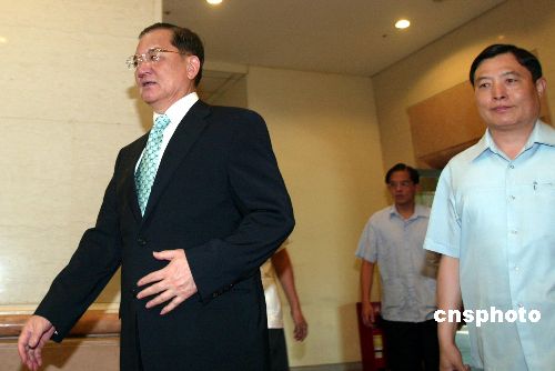 八月一日,中國國民黨主席連戰(zhàn)與新當選的國民黨主席馬英九在臺北會面。作者:盛佳鵬