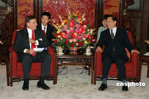 中國(guó)國(guó)務(wù)委員唐家璇八月二日在北京中南海會(huì)見代理團(tuán)長(zhǎng)約翰·米加等美國(guó)國(guó)會(huì)眾議院美中議會(huì)交流小組代表團(tuán)成員。作者:毛建軍