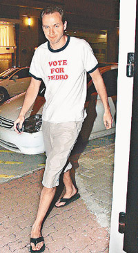 另一邊,“老外新歡”于前晚九時左右,由所住大廈的走火通道極速步出,然后截的士離去,守候記者未能跟上,傳媒猜測他會否到半島酒店會合柏芝,不過“老外”所乘之的士后來折返兜客,司機向記者透露“老外”于中環(huán)云咸街下車,至十時四十分,一身街坊look,穿上T恤短褲配拖鞋的“老外”由正門步行回家,他回家時間與柏芝極為合拍,面對傳媒拍照他亦神態(tài)自若,還與管理員以普通話打招呼,難怪他可以當(dāng)柏芝的英文老師!不過記者問他:“同柏芝談戀愛多久了?”他卻不發(fā)一言就急步入大廈。昨晚七時,他召了部的士由寓所出發(fā)往機場,沿途欲擺脫記者追訪不果,抵達(dá)機場后,記者問他是否跟柏芝一同出埠及去哪?他一概不回應(yīng)就入閘離開。但柏芝經(jīng)理人表示柏芝人在香港,在家中休息。