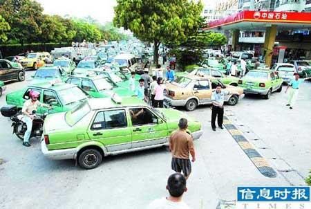 隨后記者來到了林和西橫路泛城加油站。但負(fù)責(zé)人和普通工人都拒絕記者采訪,說沒有上頭的通知,他們不會接受任何采訪。不過記者最后通過出租車司機(jī)了解到,此加油站90#油已不多。果然,5點(diǎn)30分左右,記者得到確切消息,此加油站90#油售罄。在黃埔大道員村加油站、農(nóng)林下路加油站、先烈中路BP加油站、敦和路敦和加油站都無油可加;黃埔大道東郊加油站和珠江中穗加油站只有97#油可加,一些出租車只得忍痛加97#油了;中山大道東安加油站、工業(yè)大道新裕加油站只有93#油可加;新港西路銀海加油站只有90#油出售,但已吃緊;花地大道花地灣加油站93#油已售罄,90#、97#油也所剩不多。