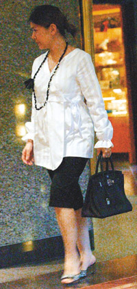 中新網(wǎng)8月4日電 據(jù)臺灣媒體報道,懷孕5個月的張清芳,昨天傍晚跟好友秀秀、洪偉明等人在遠東飯店喝下午茶,她穿著黑白色系孕婦裝,手提黑色Hermes柏金包(約40萬臺幣),十分高貴典雅,跟朋友喝完下午茶,晚上陪公婆吃飯,今晚還要陪先生宋學(xué)仁出席飯局,張清芳已完全從歌手轉(zhuǎn)變?yōu)榉Q職的宋太太。