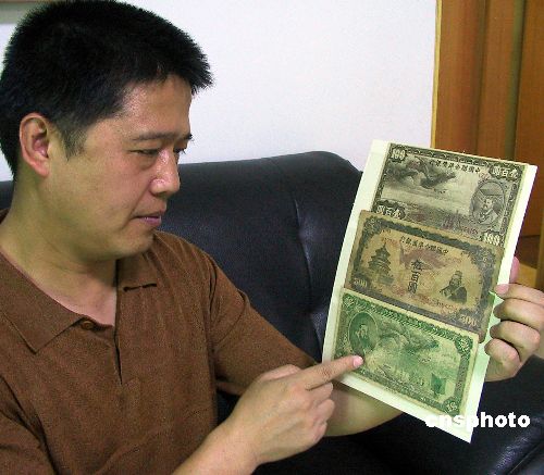 隨著抗日戰(zhàn)爭勝利60周年紀念日的臨近,湖南省收藏協(xié)會理事闞志雄先生8月4日向本社記者展示了自己十幾年收集的日偽政府貨幣。他說,從貨幣上看,當時日本對華的經(jīng)濟掠奪“鐵證如山”。作者:李思之