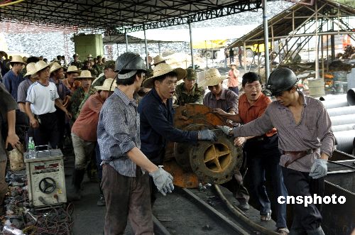 從江西省調(diào)來的二臺七百二十五千瓦大功率抽水機(jī)八月九日到達(dá)廣東省興寧事故煤礦,以加快透水事故礦井的抽水進(jìn)度。目前,一百零二名礦工仍被困井下。作者:羅仰明