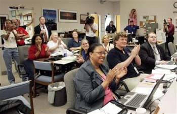 真是“起飛時難降也難”,美國愛德華茲空軍基地九日的黎明靜悄悄,當“發(fā)現(xiàn)號”航天飛機沖破大氣層的烈熾時,舉世矚目----但它終于在夜幕中閃著亮光,英雄般身負傷痕呼嘯而降......美國電視和網絡的現(xiàn)場畫面直播到這時,掌聲響起來。