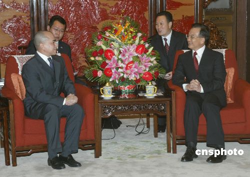 圖:溫家寶會見柬埔寨國王西哈莫尼