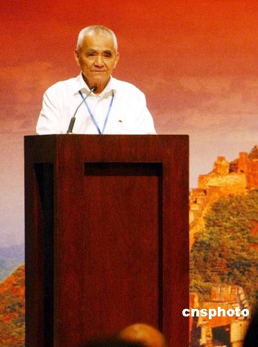 | 8月11日,紀(jì)念中國抗日戰(zhàn)爭暨世界反法西斯戰(zhàn)爭勝利六十周年午餐聚會在香港君悅酒店舉行,來自內(nèi)地和香港的數(shù)十位抗戰(zhàn)老戰(zhàn)士相聚一堂,出席紀(jì)念活動。圖為81歲的燕秀峰上臺演講,秀峰老人是抗戰(zhàn)電影《小兵張嘎》的原型人物。作者:潭達明