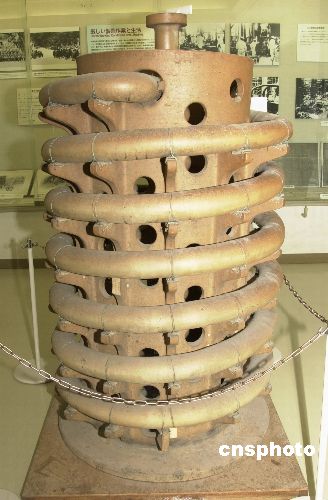 模仿當(dāng)年庫(kù)房樣式建起的“毒氣資料館”內(nèi),陳列著大量當(dāng)年留存的歷史證物,如造型復(fù)雜的化武制劑冷卻過(guò)濾裝置、陶鉛合制的各款化武容器、作業(yè)員工用的防毒護(hù)具、化武制劑儲(chǔ)存罐“紅桶”等。