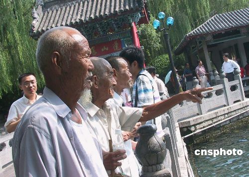 8月12日,為了慶?箲(zhàn)勝利60周年,在山東省民政部門的組織下來自全省各地的十幾位老八路聚集濟南,暢游趵突泉美景。老戰(zhàn)友們六十年后重相聚,在一起觀看美麗的泉城風光,追憶過去抗戰(zhàn)的歲月,重游戰(zhàn)斗過的地方,個個心潮澎湃。作者:周青先