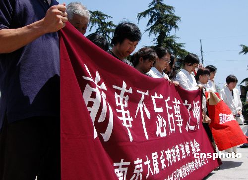炎炎烈日下,日本“銘心會(huì)·南京第二十次訪華團(tuán)”、“神戶--南京心連心”第八次訪華團(tuán)、“日中友好希望之翼訪華團(tuán)”在悼念廣場(chǎng)分別向南京大屠殺遇難者敬獻(xiàn)了花圈,并深致默哀。