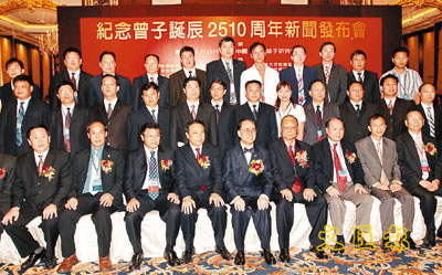 香港行政長(zhǎng)官、曾子第74代孫曾蔭權(quán),16日參加了山東嘉祥縣人民政府舉辦的新聞發(fā)布會(huì),探望了來自曾子故鄉(xiāng)的官員及企業(yè)家們,并與大家一同合影。曾蔭權(quán)表示,歡迎嘉祥縣來賓到香港來多走一走,多看一看。