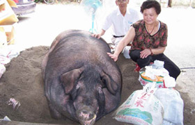 此外,動保團體指出,因為增重比賽的利潤大,有飼養(yǎng)者為了增加神豬的重量,獲取更高利潤,不擇手段在過磅前將砂、鉛或錫強行灌入神豬的胃中;等到要宰殺前時,就用尖刀刺入神豬的喉嚨,還需將尖刀前后移動,讓傷口更大,神豬不?藓稹⒔馄、取內(nèi)臟,都已違反動保法與畜牧法。