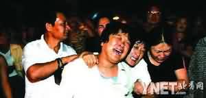 20時25分,高秀敏的遺體被家人抬上了靈車,黃色單子上“流芳千古”的字樣分外地讓人感傷。漆黑的小道,靈車緩緩而行……幾名年輕的女孩拼盡了氣力,低著頭往人群中擠,引起了人群的騷動和指責(zé)!扒笄竽,讓我們進(jìn)去吧,我們是她的學(xué)生,要看老師最后一眼”,一個小女孩帶著哭腔的話讓人群向后閃開,幾個女孩扶著靈車淚流滿面,其中一個還雙手合十,低聲為已逝的恩師祈福。