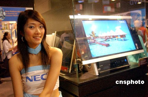香港一連四天的計算機(jī)通訊節(jié)于會展中心展開,一間品牌參展商派出多位性感靚女,為參觀者介紹及示范新產(chǎn)品,令計算機(jī)節(jié)增添氣氛。作者:譚達(dá)明