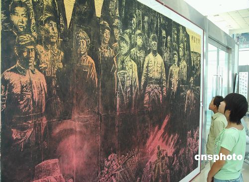 | 8月中旬,山西省陽(yáng)泉市群藝館制作完成中國(guó)國(guó)內(nèi)最大的一幅版畫(huà)“太行豐碑”,此巨幅版畫(huà)是群藝館為紀(jì)念抗戰(zhàn)勝利60周年,組織9名美術(shù)工作者歷時(shí)一個(gè)半月共同創(chuàng)作完成的,版畫(huà)長(zhǎng)3.60米,高2.40米,由百團(tuán)大戰(zhàn)等6部分組成,再現(xiàn)了抗戰(zhàn)時(shí)期我廣大軍民眾志成城、抗擊日寇的歷史場(chǎng)景。作者:續(xù)敏