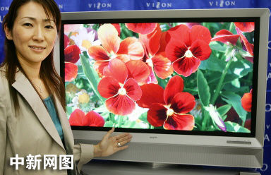 2005年8月23日,日本家用電器巨頭——三洋公司的一位職員展示著該公司最新款42英寸高清等離子電視——“PDP-42HD”。三洋公司將從10月21日起在日本國內(nèi)市場推出“Capujo”牌電視,每臺(tái)電視的價(jià)格預(yù)計(jì)是56萬5千日元(5140美元)