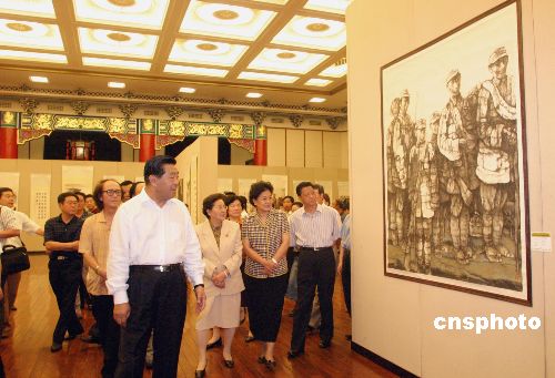 “紀(jì)念中國(guó)人民抗日戰(zhàn)爭(zhēng)勝利六十周年美術(shù)作品展”八月二十三日在北京全國(guó)政協(xié)禮堂開幕。全國(guó)政協(xié)主席賈慶林、全國(guó)人大常委會(huì)副委員長(zhǎng)、民革中央主席何魯麗等出席開幕式并參觀了展覽。展覽的主題是“以史為鑒,面向未來(lái);毋忘國(guó)恥,振興中華”,展出作品百余幅。作者:張勤