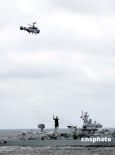 “飛赴某海區(qū)執(zhí)行艦機(jī)協(xié)同任務(wù)!”“明白!”劉進(jìn)坤從容應(yīng)答。戰(zhàn)機(jī)在甲板上空懸停、轉(zhuǎn)向。隨后前傾,大速度前出,飛離112艦。高速下沉的氣流在海上吹開(kāi)了一個(gè)很大的旋渦,隨著直升機(jī)前進(jìn)而緩緩移動(dòng)。這時(shí),從俄羅斯海軍“沙波什尼科夫海軍元帥”號(hào)反潛艦上起飛的卡-27型直升機(jī)也離開(kāi)了載艦并很快進(jìn)入航線,朝直-九跟進(jìn)。不一會(huì)兒,兩架直升機(jī)在預(yù)定海區(qū)組成編隊(duì),一前一后、一高一低,像兩只上下翻飛的蝴蝶,讓人賞心悅目。