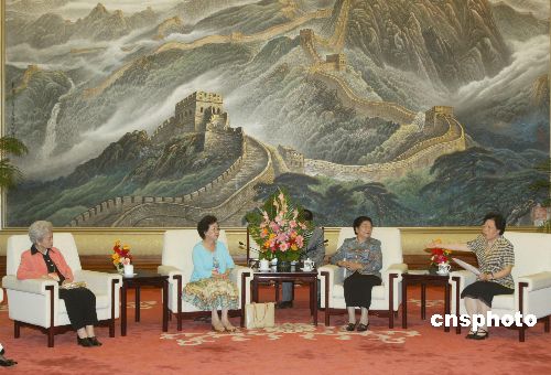 中新社北京八月二十三日電 (記者 曾嘉)全國(guó)人大常委會(huì)副委員長(zhǎng)顧秀蓮二十三日在此間人民大會(huì)堂,會(huì)見了來自美洲和大洋洲地區(qū)的華僑華人婦女代表。