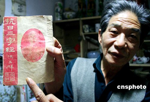 8月23日,山西省臨汾市一位收藏愛好者展示了一本抗日三字經(jīng)。這本三字經(jīng)是1939年南京政府記者老向編著的,馮玉祥將軍提的書名。當時在武漢、西安、延安印刷了八版,抗日軍隊人手一冊,主要激勵人民抗日報國,是一本對后人有深刻教育意義的好藏品。作者:張旦