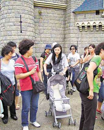 當(dāng)日所見,一身便服的邱淑貞與菲傭帶同幼女排隊與白雪公主合照后,邱淑貞即把幼女抱回嬰兒車,帶同菲傭敏捷地離開人群,趕往睡公主城堡合正在排隊的沉嘉偉和長女。