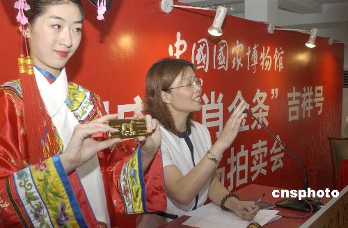 據(jù)了解,國(guó)博發(fā)行的“國(guó)寶生肖金條”中每套金條都有其唯一編號(hào),其中000一號(hào)已為國(guó)博永久收藏。此次拍賣(mài)的特號(hào),均為緊跟000一號(hào)后的“吉祥號(hào)”,分別為0000號(hào)、000二號(hào)、000六號(hào)的全套金條以及000三號(hào)中一千克規(guī)格的金條。此次拍賣(mài)會(huì)在北京和珠海兩地同時(shí)起拍,金條底價(jià)均為每克一百三十九元。